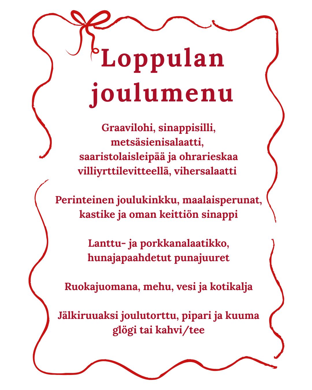 Räätälöimme pikkujoulupaketit myös toiveiden mukaan, kysy tarjous!